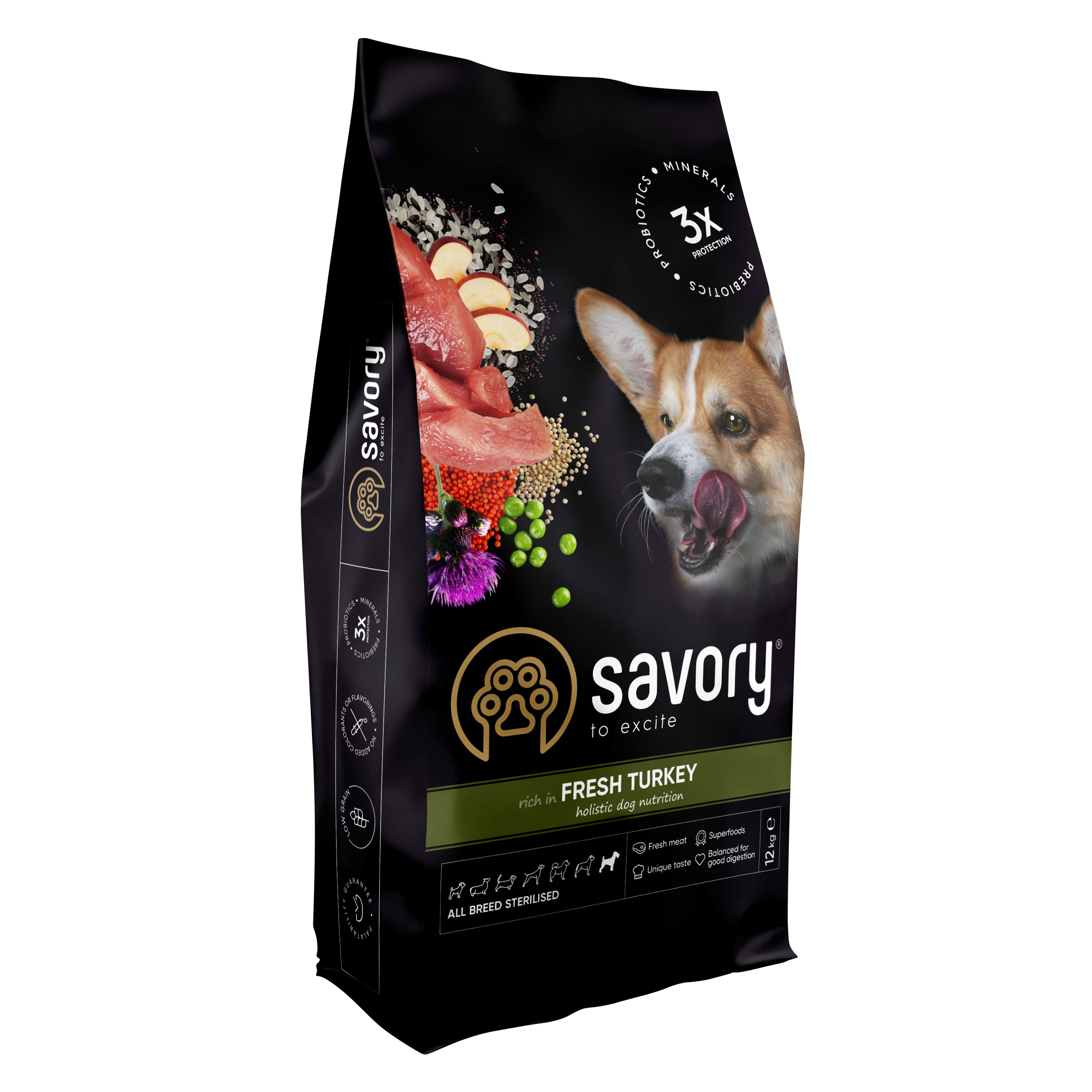 Сухий корм Savory для стерилізованих собак усіх порід зі свіжою індичкою 12кг.png