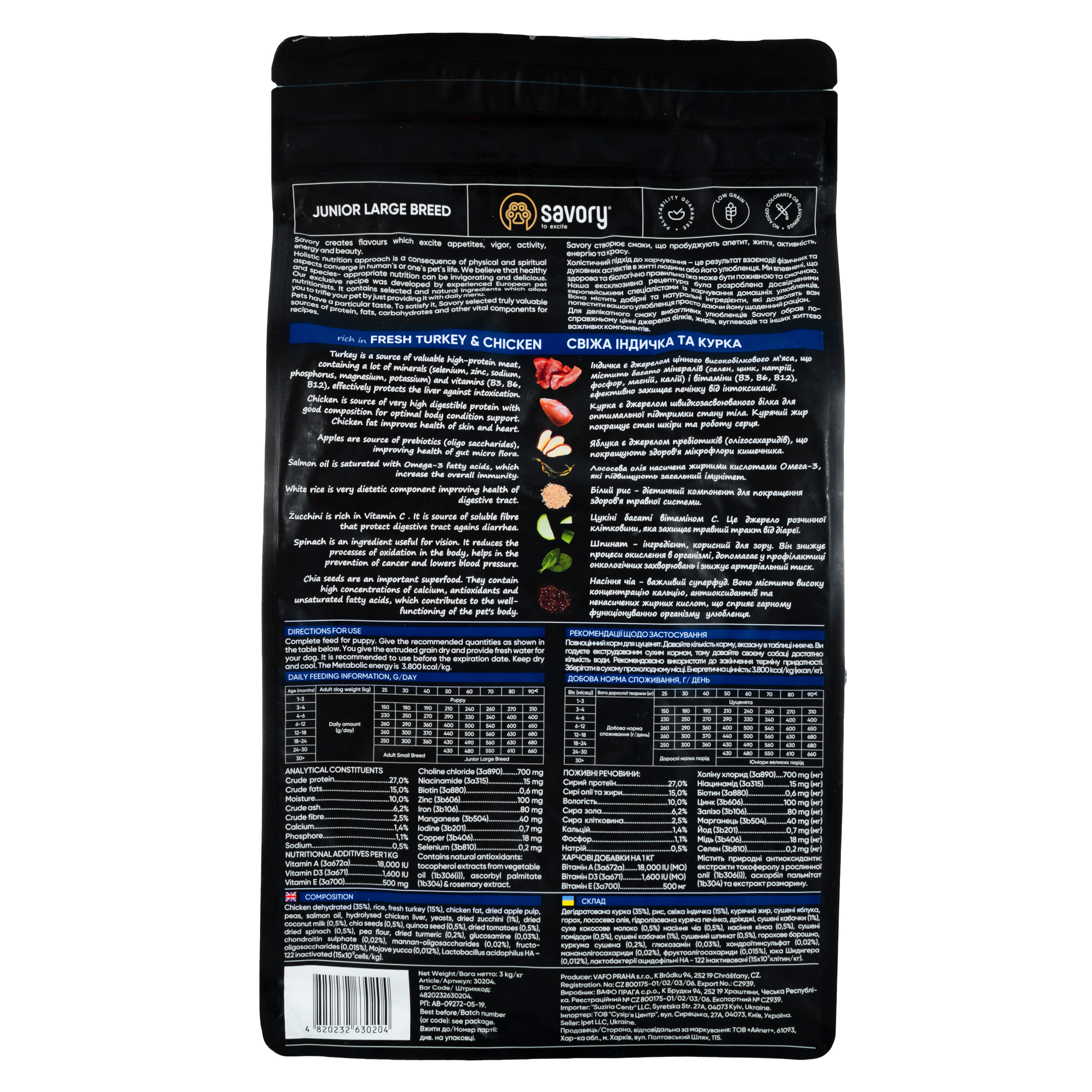 Сухий корм Savory для цуценят великих порід зі свіжим м’ясом індички та курки, 3 кг.jpg